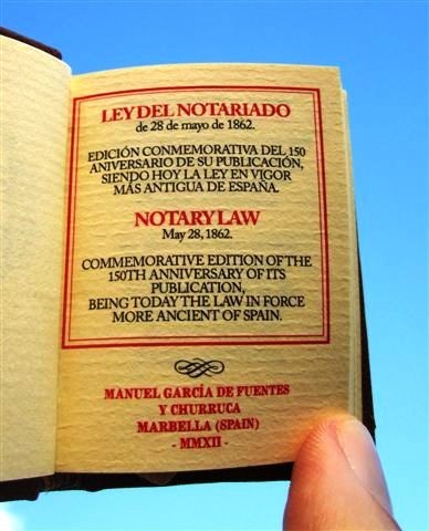 Edición conmemorativa del 150 aniversario de su publicación, siendo hoy la ley en vigor más antigua de España. – (TAMAÑO MINIATURA) - Manuel García de Fuentes Churruca / Marbella, 2012 / 66 x 50 mms.