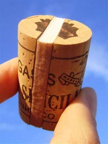 Curious binding made with a cork of bottle cut into two parts, that serve as covers. Cork corresponds to the winery of my friend the Count de Hervías, don Íñigo Manso de Zúñiga Ugartechea, in La Rioja (Spain), which produced exquisite wines.
