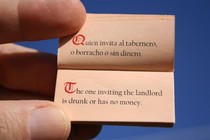 Introducción sobre el vino en España, seguido de un repertorio de refranes sobre el vino, con texto bilingüe en español e inglés. Sin paginar.