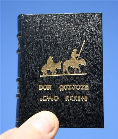 Printed with two inks on blue laid paper in limited edition of 100 copies, numbered and signed by the editor. Binding in full blue leather with the silhouettes of don Quixote and Sancho Panza in gold on both planes.